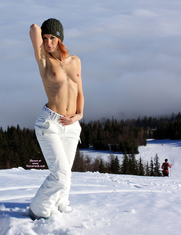 Hi guys and girls,In February I shown you some sexy summer outfits, this time you can see, that also in winter I like it to wear hot and revealing clothes.And even at skiing in the mountains I enjoy the feeling of being naked. It was very funny to take a sunbath in that warm winter sun.But now I am looking forward that I can wear my new white see-through minidress without a coat over it, heheKisses Vienna