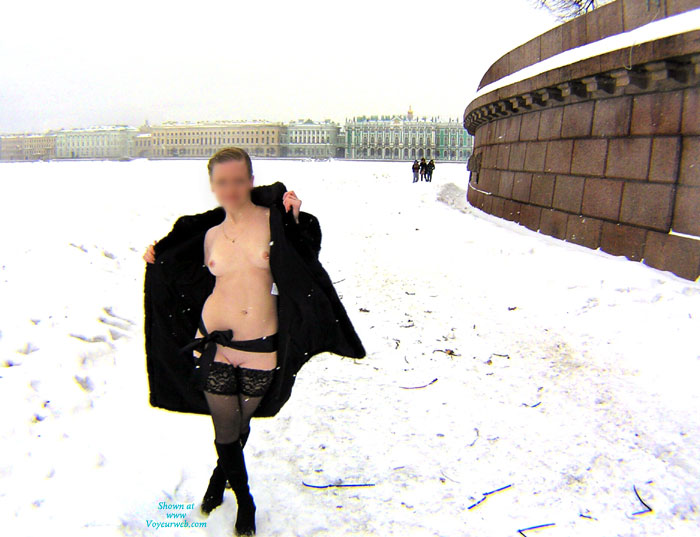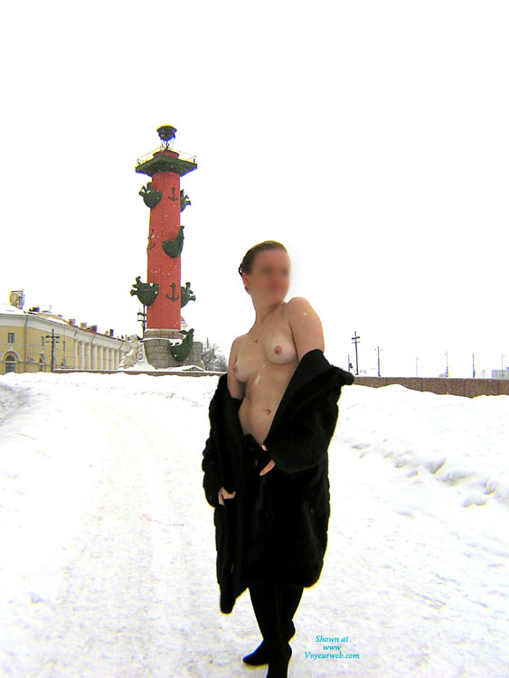It was a cold snowy day a week ago. Milena got so horny that we decided to go to the city center and make some pictures. It was impossible to hide from people there but to our surprise their reaction was rather good. Noone showed they didn't like what we were doing, some people just smiled seeing Milena naked, others pretended they didn't pay any attention to the nude girl. It was hard to do a long photo session because of a very cold weather, so we quickly returned to the car. But Milena was excited, so I'm sure we'll continue our sessions.