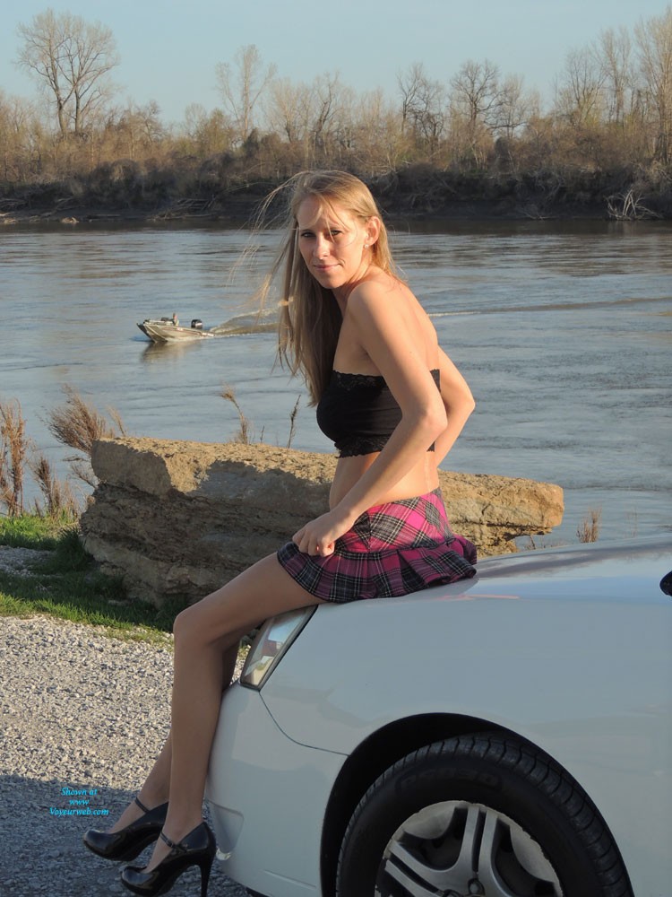 Blonde Dressed Outdoors Public Exhibitionist Public Place Pussy Shaved