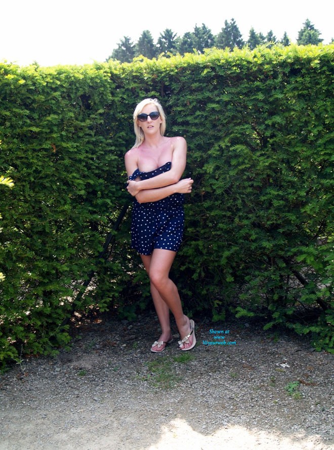 Well Jodie and I went for a walk around a major historic landmark. These are sum of the results. Thee were a lot of people about and we got busted once or twice. Nobody seemed to mind though. For those that dont like enhanced breasts or ink I accept your choice, but its our way of expressing ourselves.