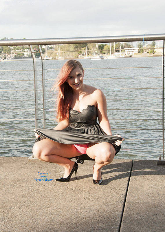 Dressed Flashing High Heels Amateurs Public Exhibitionist Public Place Redhead