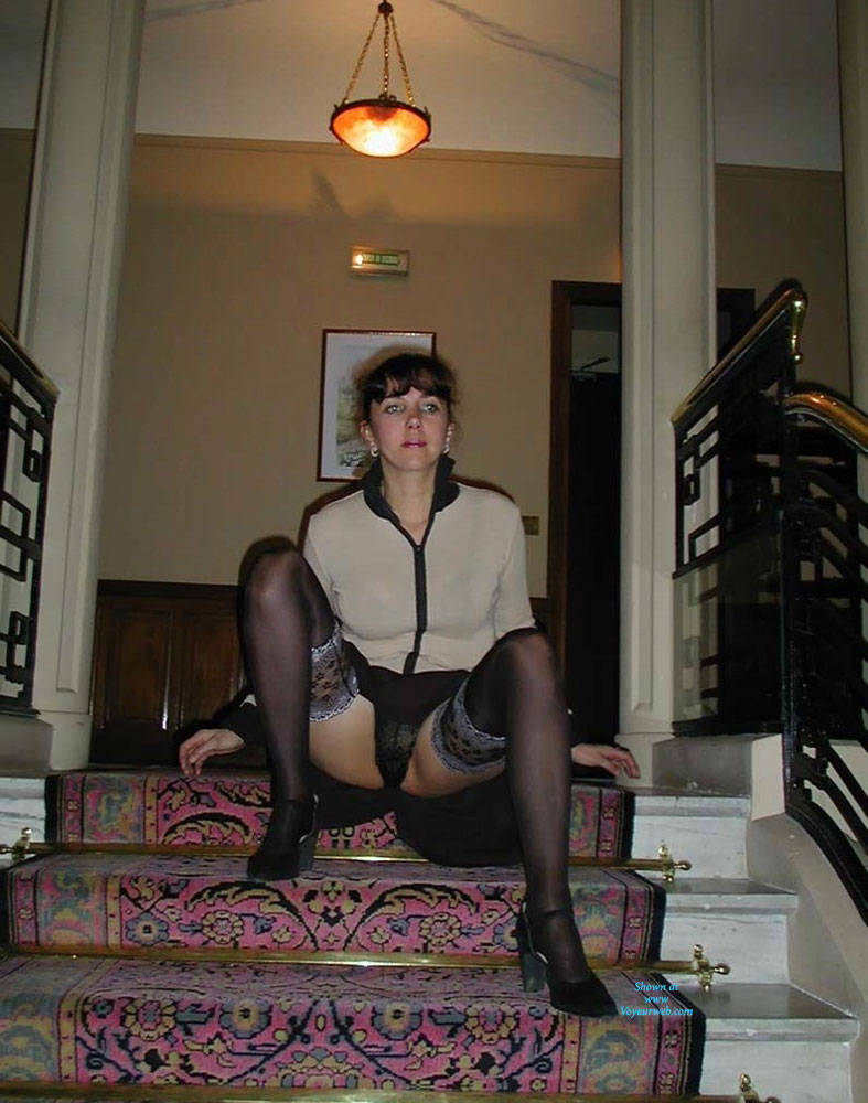 Brunette Flashing High Heels Amateurs Lingerie Public Exhibitionist Public Place