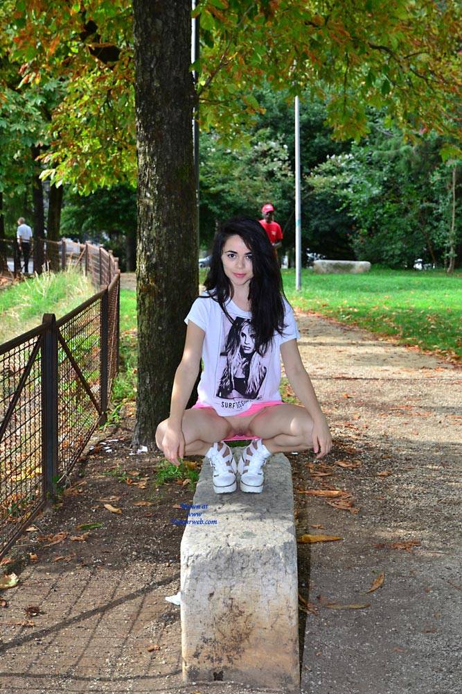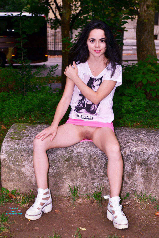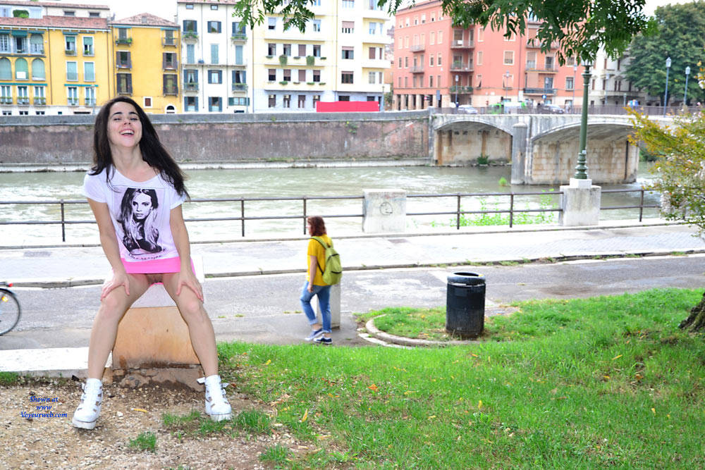 Brunette Flashing Public Exhibitionist Public Place Shaved