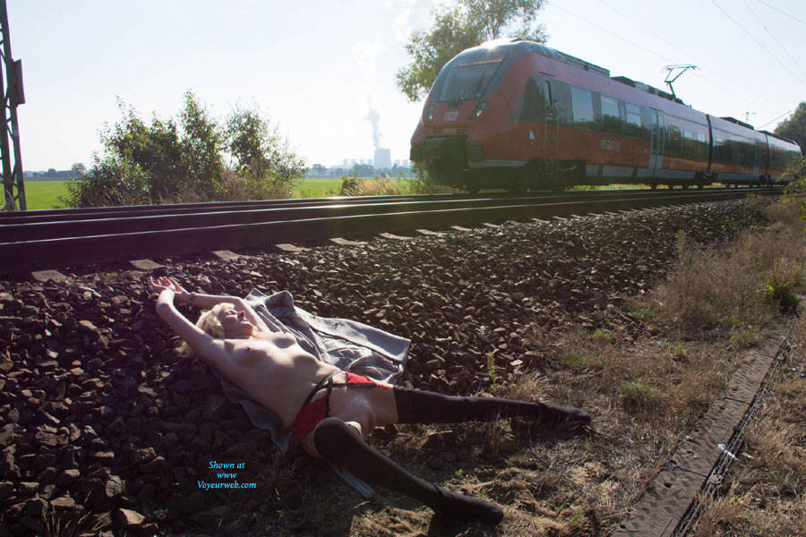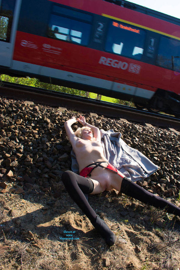 Public nude while passenger-trains passing by..
