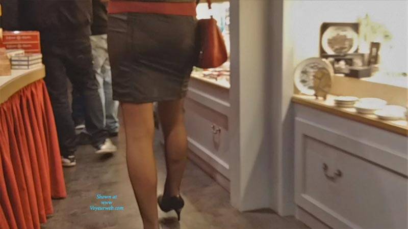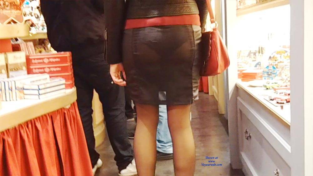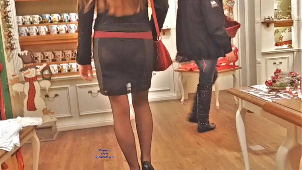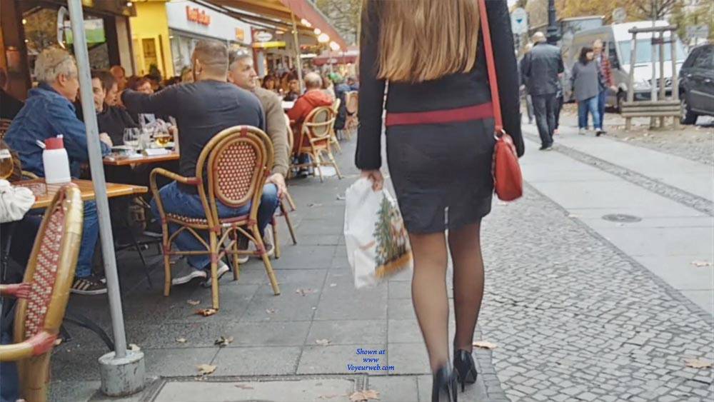 Berlin Kurfuerstendamm, Girl was shopping Christmas stuff. Her Skirt was transparent at her back and her ass was showing all over the street.