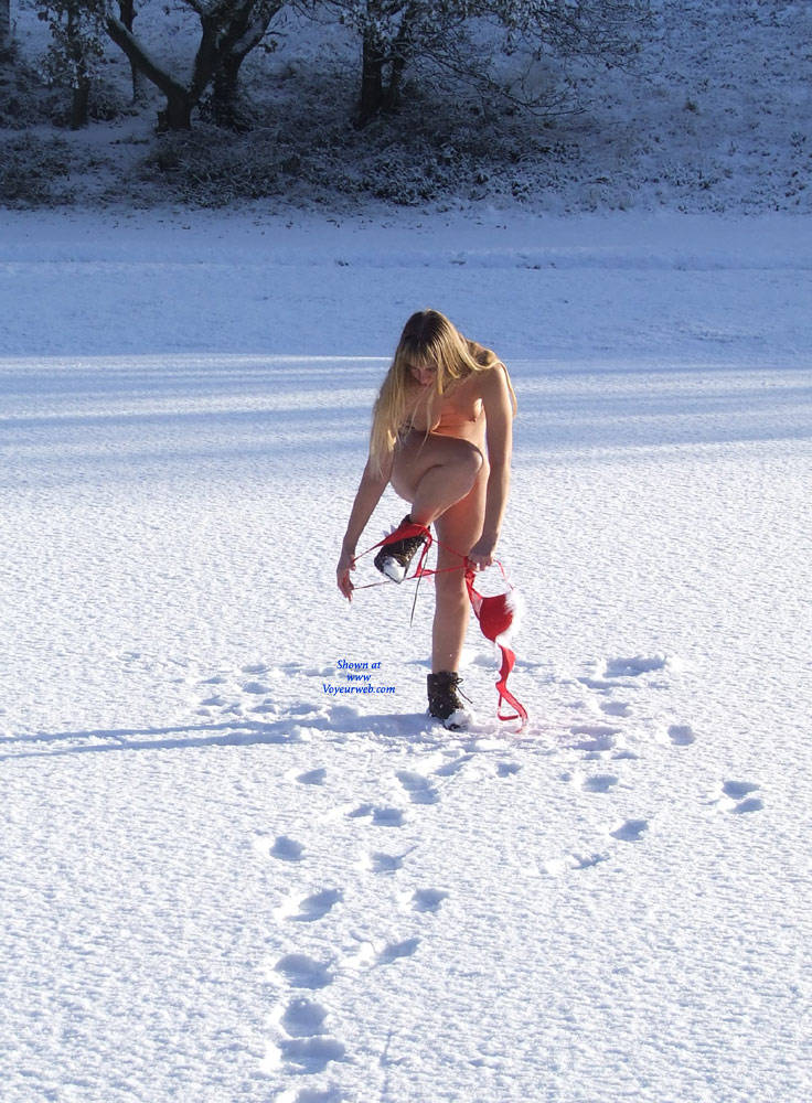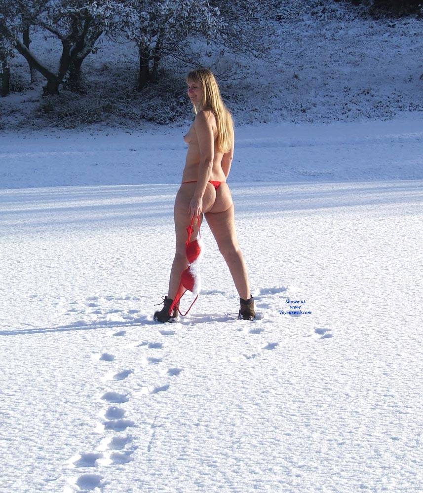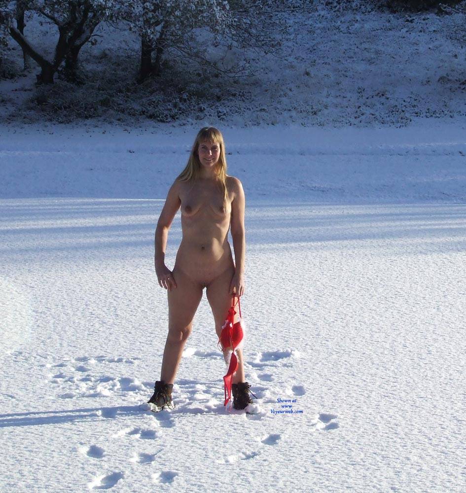After a light dusting of snow on a local golf course overnight it was time for some photos.... whilst getting naked of course! The green keeper was out doing his rounds and almost got caught but it was soo much fun and made me really horny..