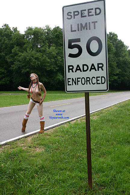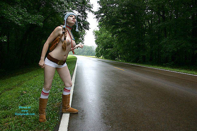 Riding down the Natchez Trace PWKY one rainy day she decided to stop and try and re-create a tribute to her favorite performer Madonna and posed for some hitch-hiking photos along the roadside.