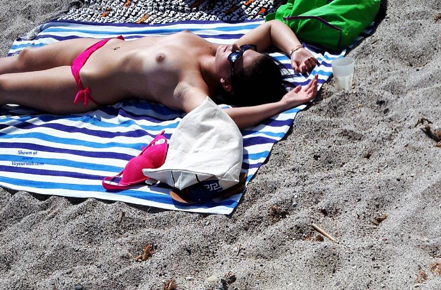 Topless Girls Beach Brunette Outdoors Beach Voyeur