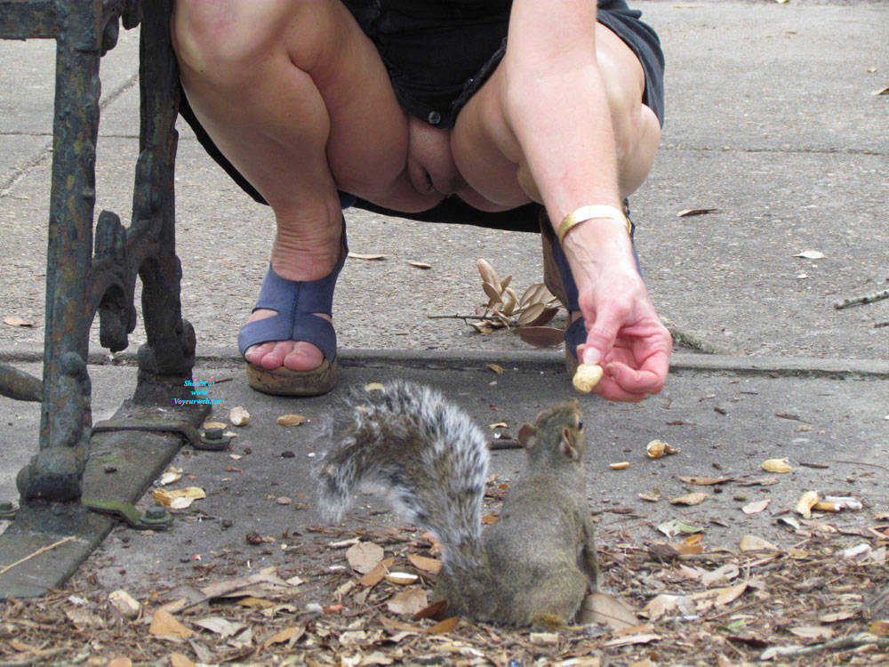 We drove to Bienville Park in Mobile Ala. to feed the squirrels. They will eat right out of your hand. She never wears underwear so it's always a revealing good time.