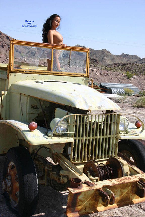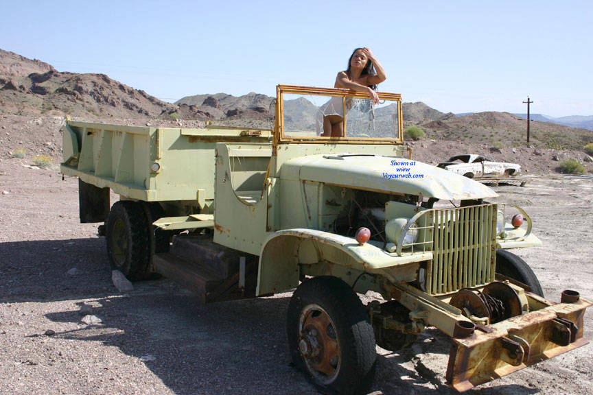 We found this old truck in a junkyard and she wanted to take it for a spin. Our friend, the owner, said she could try if she would try it naked. She agreed and showed off for us.