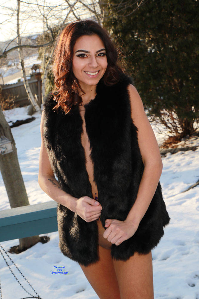 Here are a few more photos of the sexy Sierra in her fur coat on the back porch. As you can tell it was a bit nippy out.