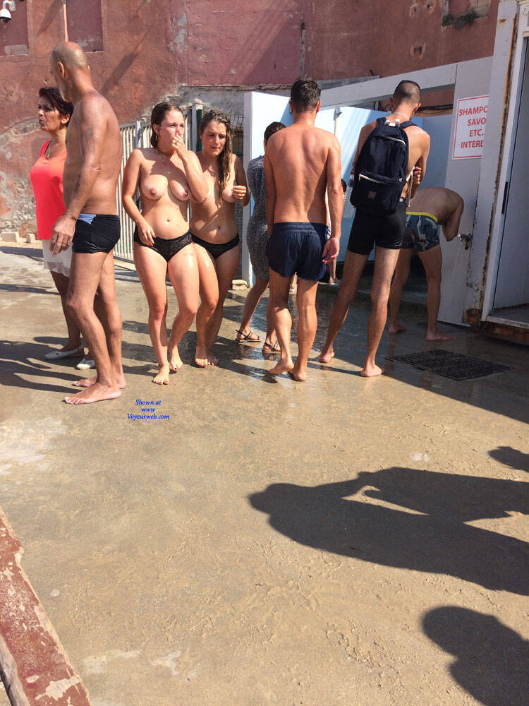 I saw 2 topless girls at the beach in Marseille. They were about to take their shower. Here are a few pics of them. Enjoy!