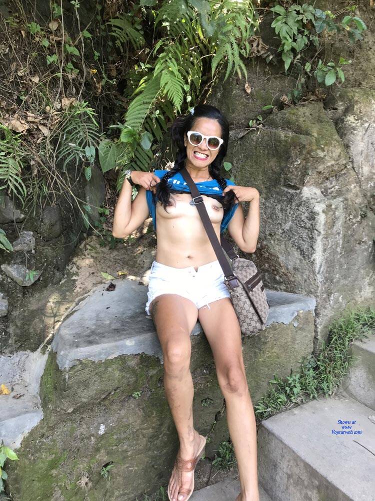 Brunette Public Exhibitionist Flashing Outdoors Public Place Amateur