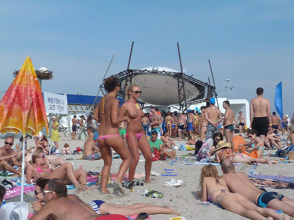 Topless Girls Beach Blonde Brunette Outdoors Beach Voyeur