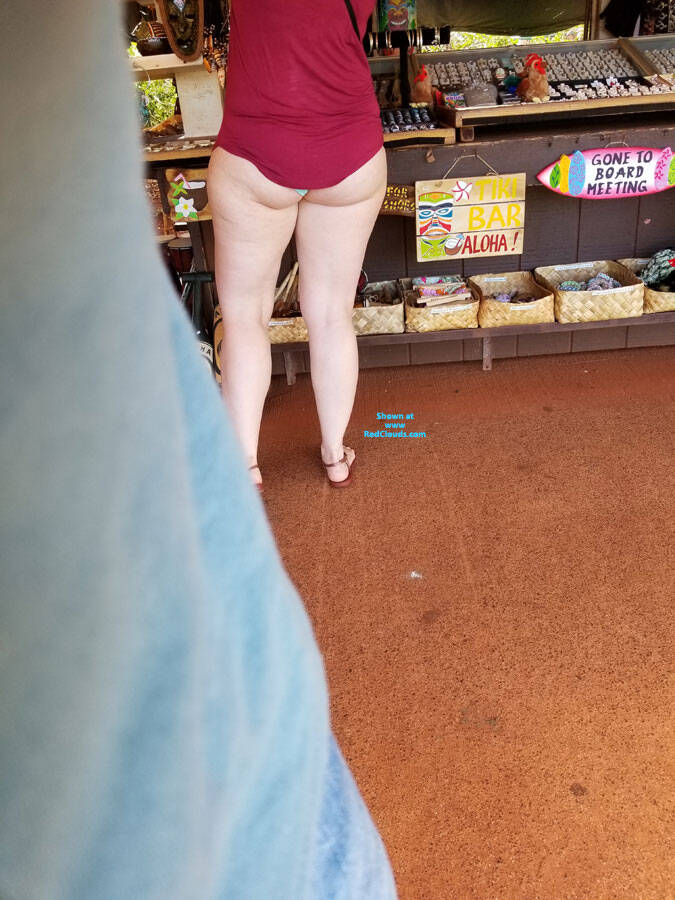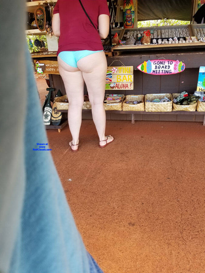 she was tipped off by the vendor and didn't  care by flipping up shirt her tail