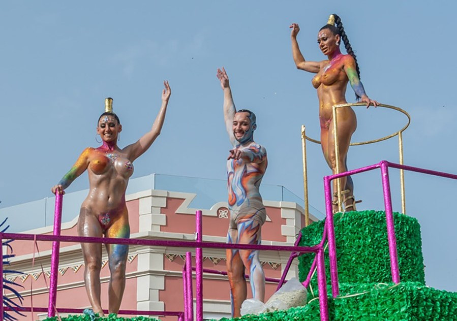 Beautiful bodypainted bodies during the carnival in a small town in the Algarve