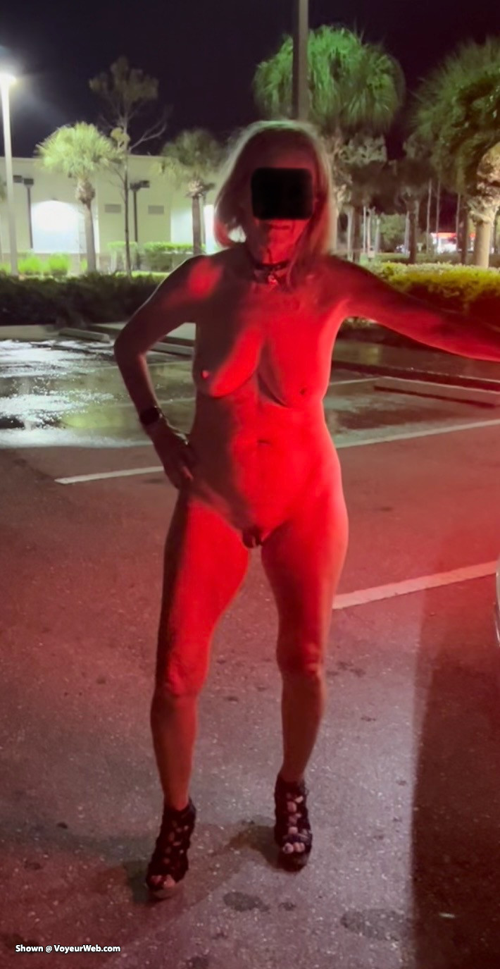 A evening drive wearing only shoes, jewelry and her collar. Stop lights and trucks are fun, plus photo shoots in parking lots.