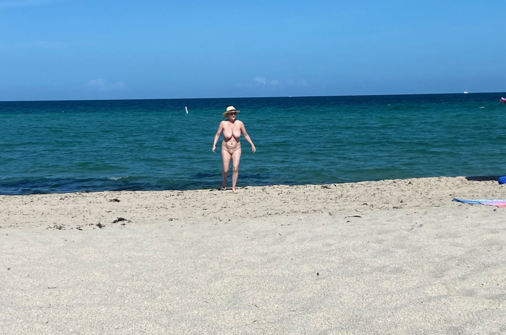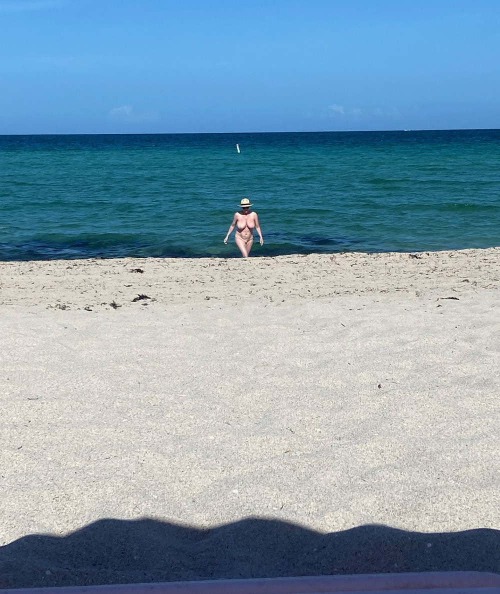 Got a few pics of this big boobied milf coming up out of the ocean. Wish she would have sat down next to me!