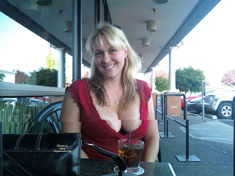 Having a one day and noticed a blonde doing the same thing, I asked her a few funny things, she laughed, then I asked her about her nice big boobs, she said do you like them, yes I said, she said do you have a camera, I said sure, how about my cell phone, next thing you know look what popped out, next thing you know we hooked up later for a and been together since....