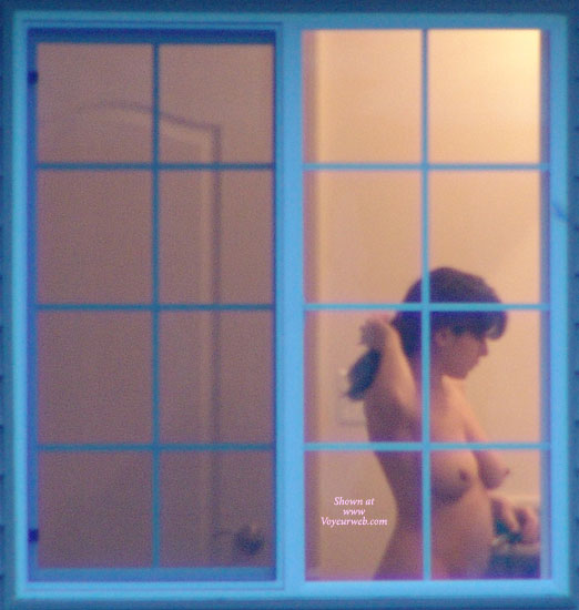 I had been enjoying a neighbor in her bathroom for a few months. My moring coffee was nice from 6:45 or so for about 30 minutes. She must have known several neighbors were watching. She had no curtains and sometimes she left the light on. But, her husband put up blinds and she keeps them closed.Is it OK to look from one house into another? What about taking photos of someone showing off for the neighbors?Some may think this is a person I know. What do you think? See the photo from my house to hers?
