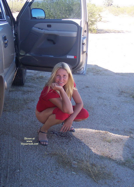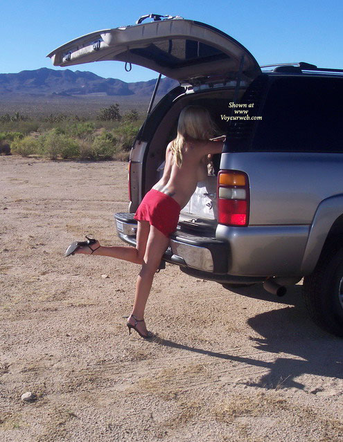 This is a continuation of traveling to Las Vegas on Route 66. Definitely the road less traveled. Desert Flower is such a fun and daring woman. There were people everywhere at this gas station/cafe, but I didn't think to try to get them in the pics. She is so sexy it is hard to concentrate on driving. This is our 2nd in this series. Please vote.