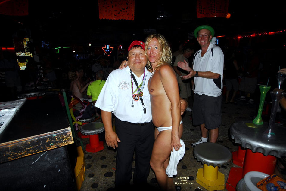 So off to one of my favorite places in the Carribean...Carlos n Charlies in Cozumel. The last time I was here we created our own nude party. This time...it was high on my list of "must do's" on this particular trip!How many public bars can you just take off all of you clothes and dance? I wish there were more.Others got naked too...well, at least topless. Much of the staff remembered me from my last visit. Any of you club owners out there in the States...if you have a place where I can come and dance nude for fun, let me know.Kisses,---Sunkissed