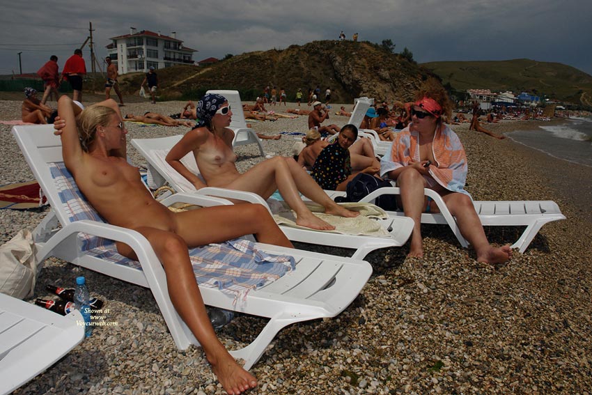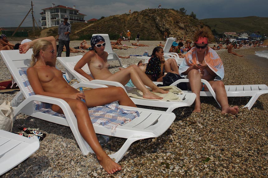 Like many of you, I am yet to define my attitude toward voyeur photography. My wife and i are quite comfortable with a thought of being caught nude anywhere, but I am still uncertain about taking voyeur shots by myself. There is no good you shoot someone (no matter related or a stranger, nude or not) without clearly expressed permission. It is getting worse when you yourself become the subject of stealth shooting and, say, after some time come across your images somewhere in the web. In fact, you never know when a spy cam works :) But what is really bad about it? Nothing bad … if you're happy with your appearance and what you are doing in front of a spy cam. I think our anxious concern about our personal identity and privacy is somewhat exaggerated, it is almost impossible keeping your privacy intact in our heavily digitized age …The images below were taken on Koktebel nudist beach (44°57'N 35°15'E) last summer. All girls are known to me (hope one of them looks quite familiar to you either). Actually i was not going to shoot them but eventually the temptation took over me and i decided to capture the scene in voyeur mode (got some posed but the girls at ease are most valuable). Well, voyeur mode … you know, guys, the most hidden cam is the one right in front of your eyes. I just mounted my cam on the tripod and took some nasty seascape shots from different points (i hate seascapes, they are all the same :)), then i turned the cam in the opposite direction, blindly framing the girls in, covered it with a towel (direct sunlight can damage your cam :)), left it stood by and we all happily went swimming … after a while everyone forgot about the cam standing on the tripod but not me, i sneakily took out my cam remote control and started shooting … i repeated the trick several times as i needed to check the results and reposition the cam to achieve some acceptable shots … be smiling, artfully yours, veiiia :)