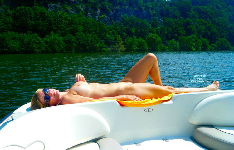 We took our boat out for the day. It was a hot day. It did not take my wife long to start removing her bikini and posing for the camera. Thank you for the great comments on the last contri. Yes, she is 43 and yes I am lucky. Hope you enjoy.