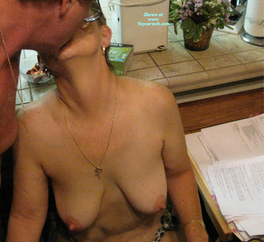 Hubby giving me a kiss while I work on files I brought home for the weekend.