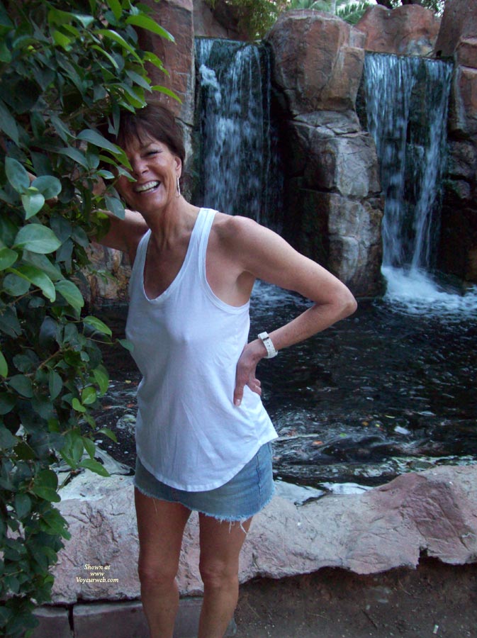 We were both pulling my top down to expose the Pokies better for several sight seers in Las Vegas while a stranger took the picture with our camera.
