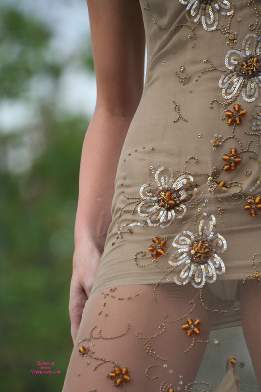 This model did not notice that her dress slid up to each of these steps and thus discovered her panties.
