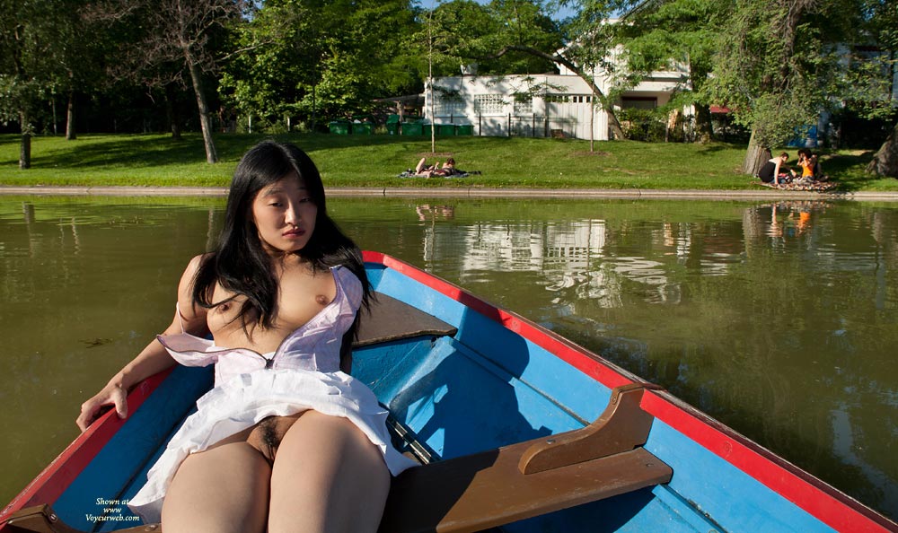 Dear VoyeurWebbers ! It's summer and time for Paul and me to play naked in public photos... We did these pictures at Lac Dausmesnil, in the "Bois de Vincennes" (not far from the place we did the last month contributions photos). At this little lake, you can rent a boat and have fun... That's what we did !!! Kiss from Paris... Minji and Paul