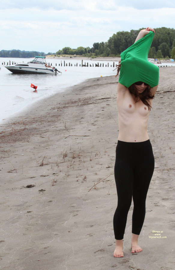 As the sun burns off the clouds, Emily stakes out her place to bask in the sun... Now, off to find someone to oil her up... {to be continued}