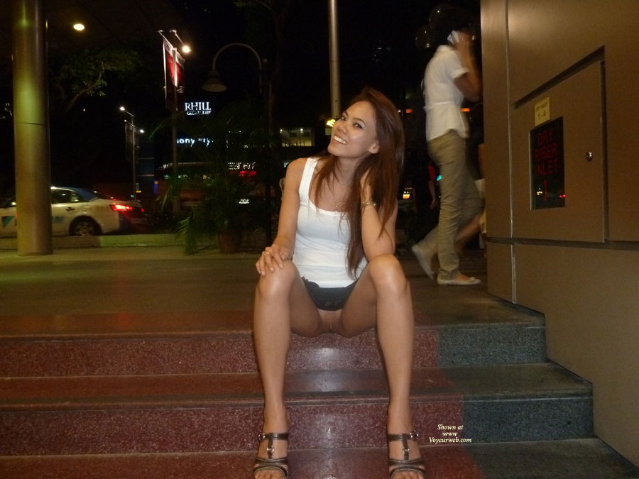 Hi All, While my boyfriend and I were in Singapore we decided to do a city tour in a mini-skirt with no panties in public. Quite fun! I enjoyed it so much. At one point when going up the elevator a guy yelled at my boyfriend for taking pictures. Haha. So funny! :-) Enjoy and vote if you like these! XOXOXO Julie P.