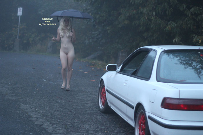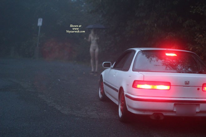 Emily decided to have some "naughty fun" at the Halloween costume party she was invited to... and went as Lady Godiva (but with suitably shortened hair so as not to completely hide herself). After partying naked all night long, Emily was still in the mood for fun in the morning, and decided to act out as a hitch-hiker who had lost both her clothes and her car keys at the party... looking for a ride back to her motel room.