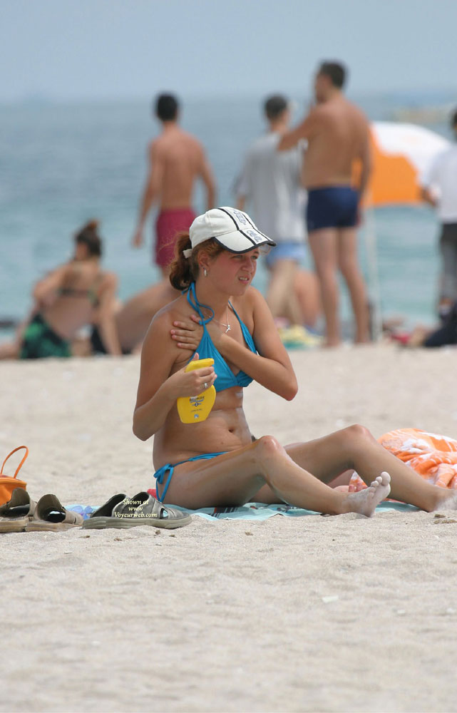 I saw this girl on the beach, starting to put oil on her body. My wish came true when she loses her top Enjoy as i did