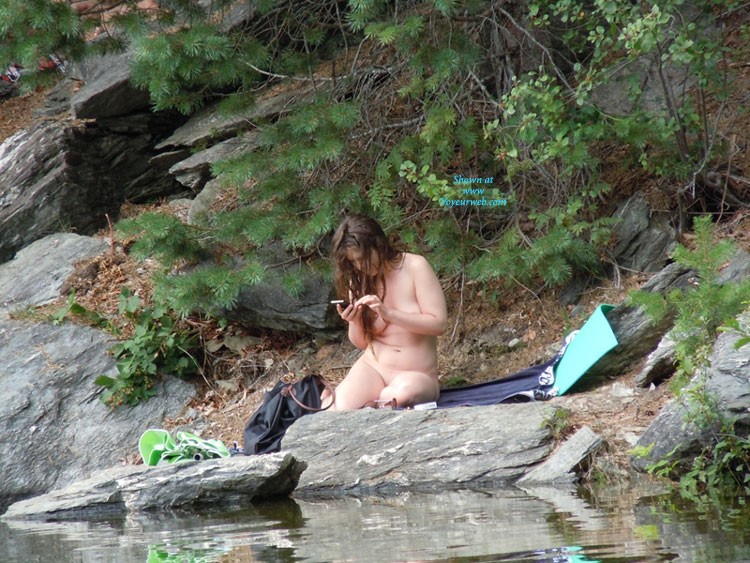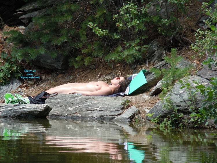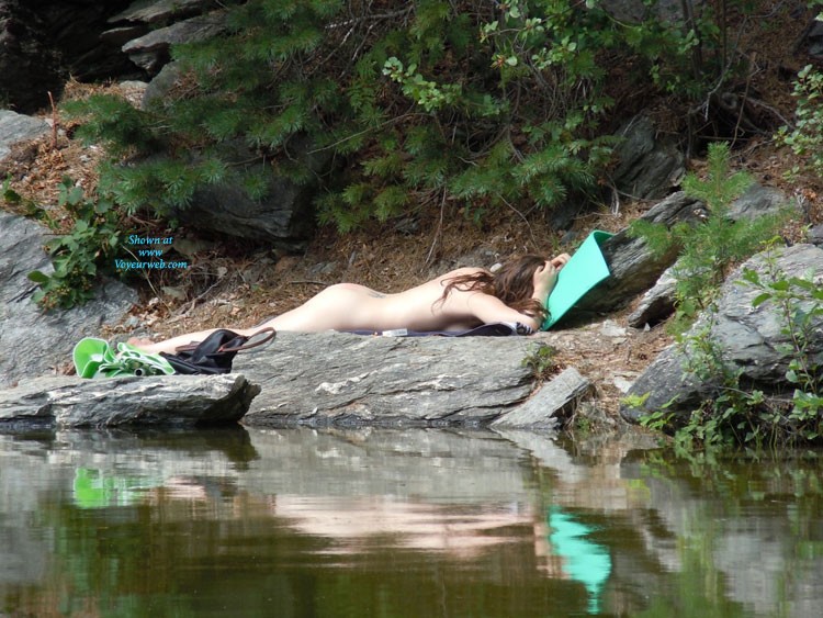I all, I m posting some pics of a nice young girl sunbathing completely naked all alone. What a great view ! PS: in one pic you can spot a voyeur trying to come nearer to her
