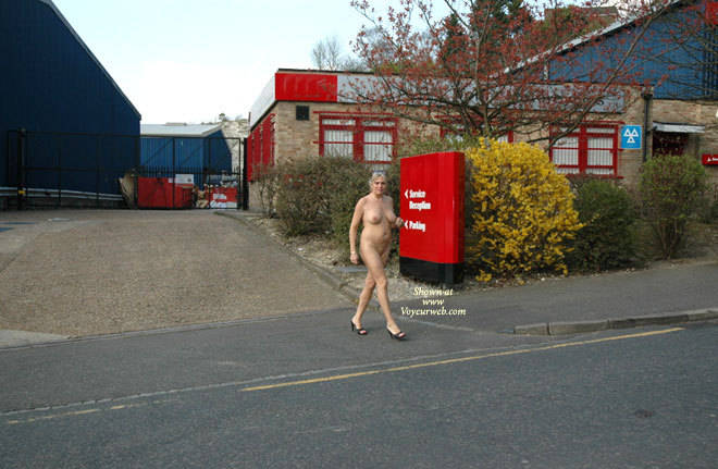 More of me again flashing outside a Honda workshop and then I decided to go for a walk. I love the feeling of being naked and strangers seeing me on a nice sunny day!
