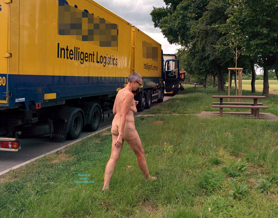 Nude at German highway parking lot