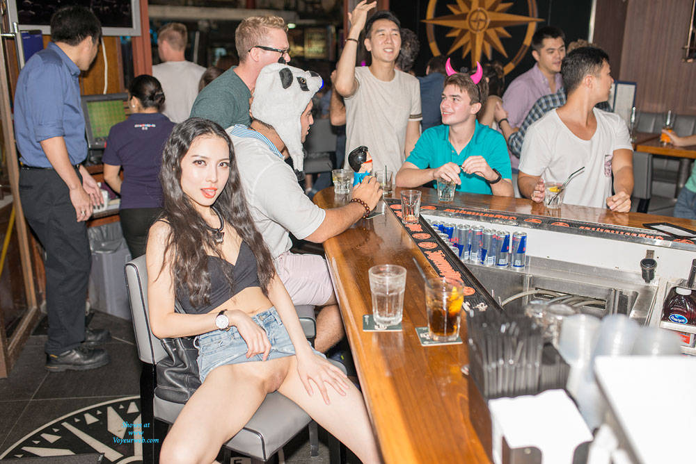 This is my first time showing my little pussy in public place. We went to few bar and I showed off and some happy customers support me. I like it! :-) Now I want to do more. Any ideas you think you want me to do for you? Jennifer Q.