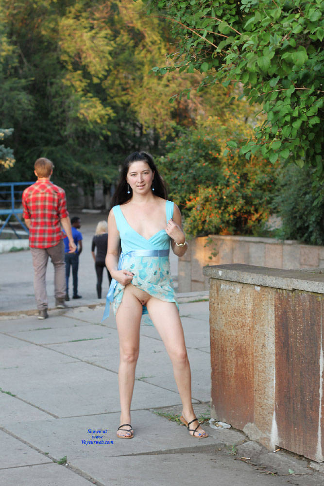 Brunette Flashing Public Exhibitionist Public Place Shaved Wife/Wives