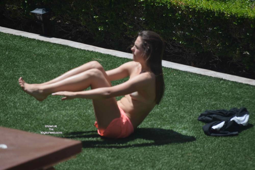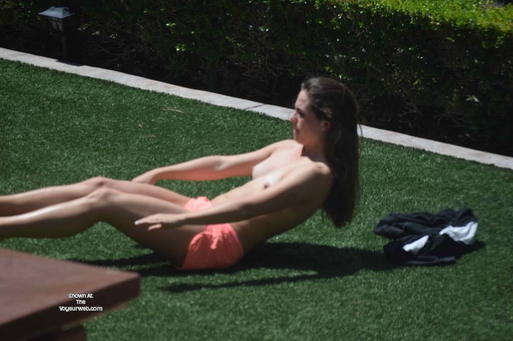 I was walking past a window and spotted this beauty sunbathing topless in the yard next door. I grabbed the telephoto lens and started snapping... Enjoy!