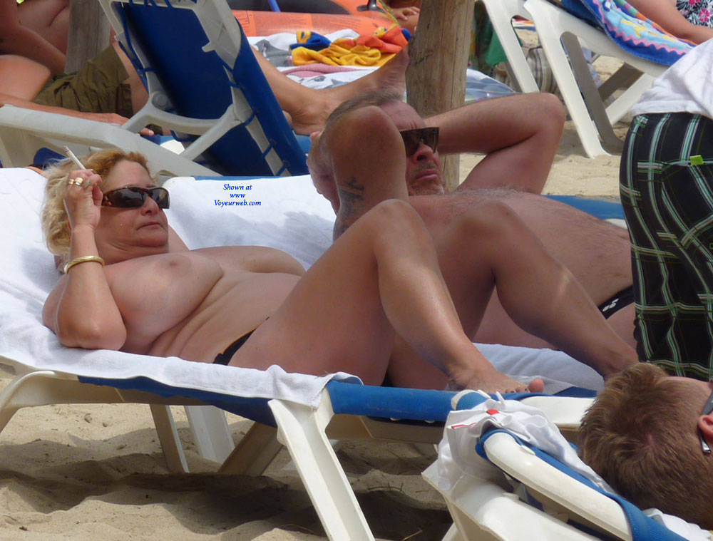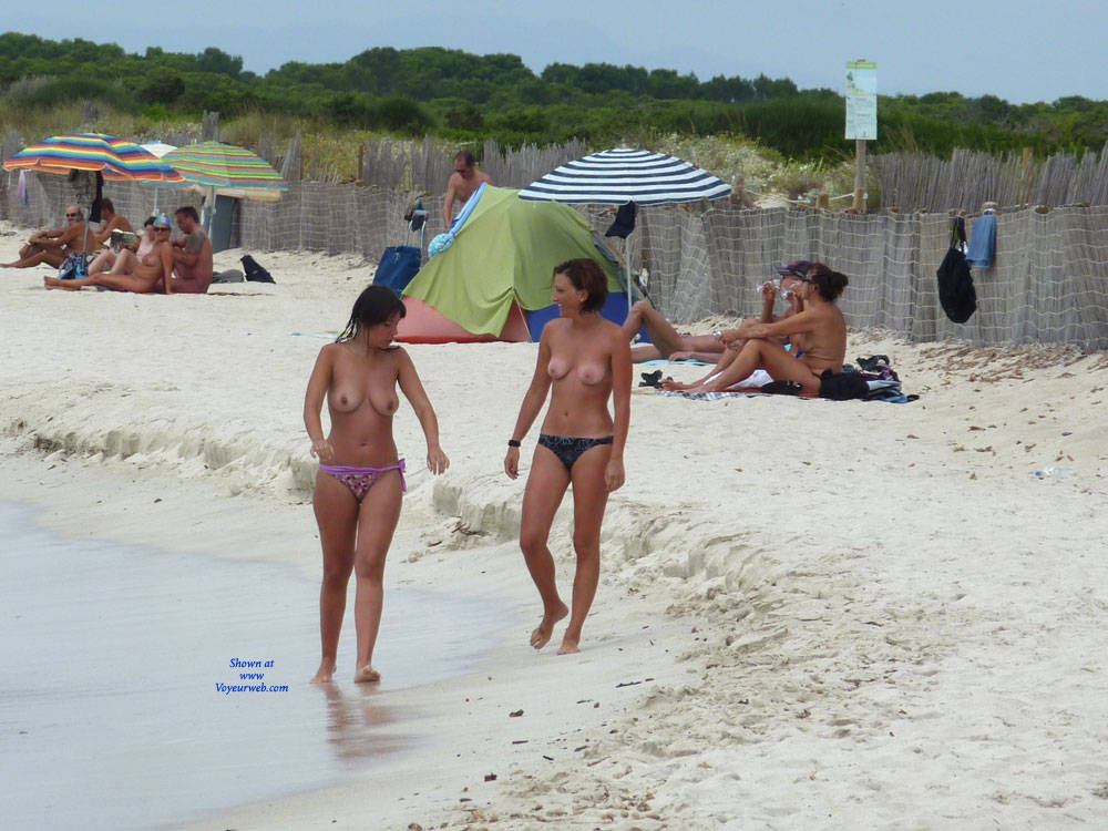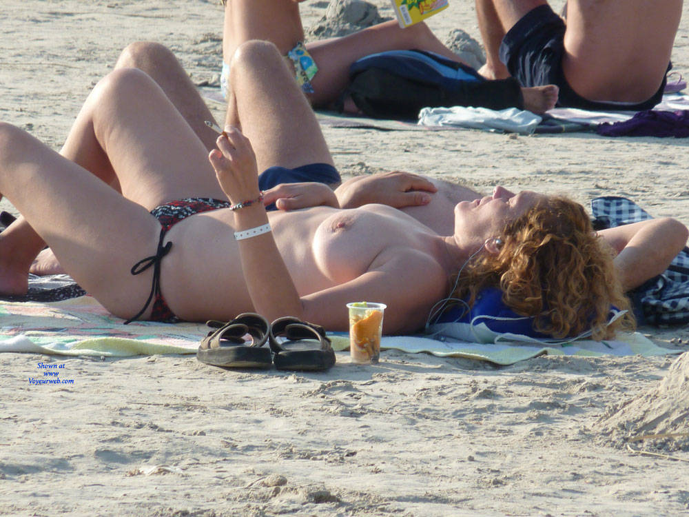 • Picture 5 my favourite. Woman on right with beautiful little breasts newly exposed to the sun. Gorgeous areolas Cute bikini pants with matching toenail varnish - classy gal.
