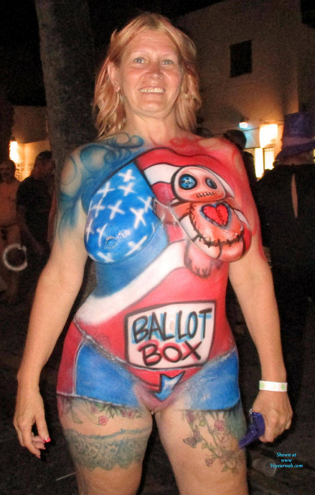 Photo 3 was unfortunate. Hard to imagine people broad minded enough to be at Fantasyfest but gullible enough to go with that political shit. Any political painting is in poor taste at an event like this - we all like skin and nudity - we should be celebrating what we have in common, not spoiling a nice bodypainting with politics (of either side).