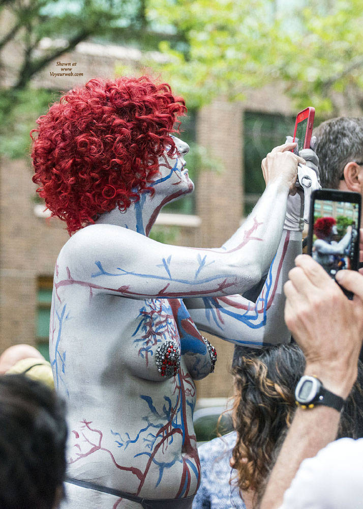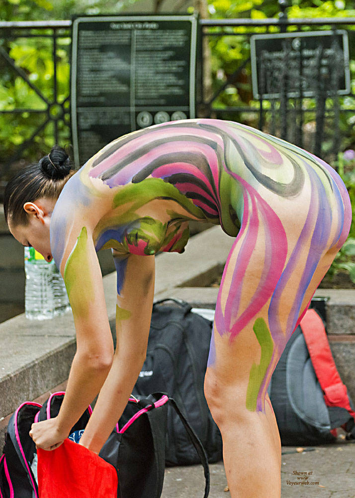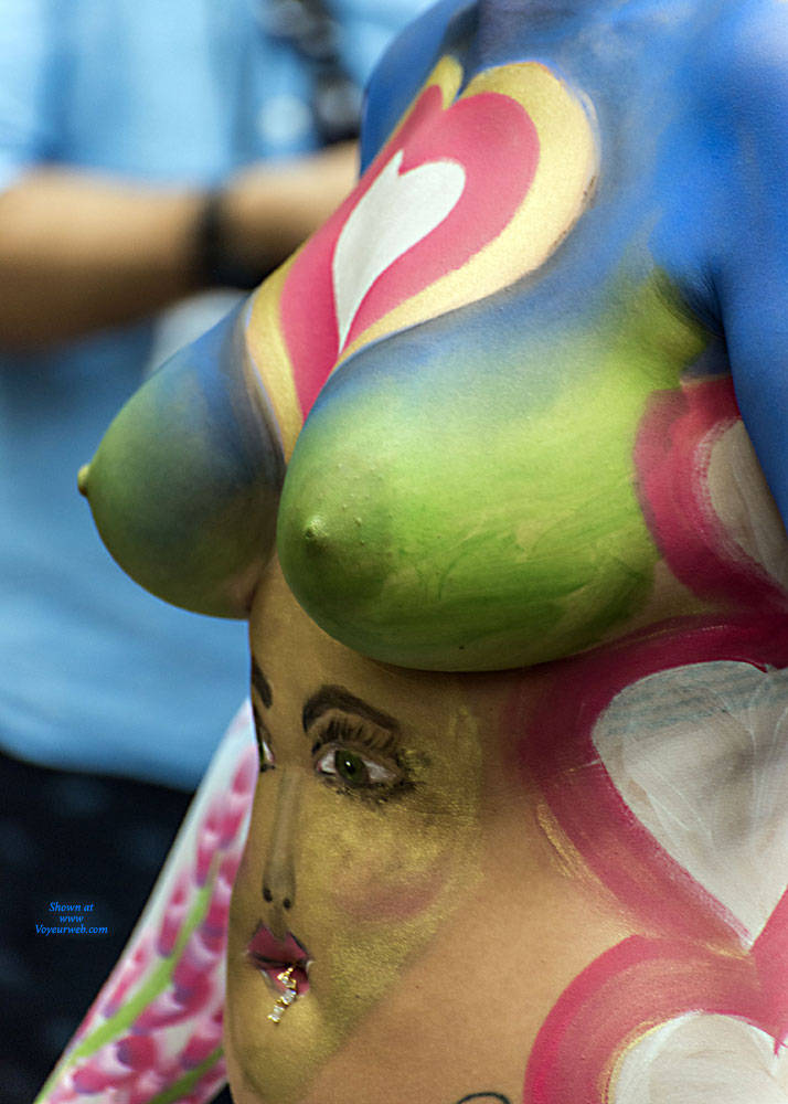 This is a collage of photos from the body painting festival held in New York City last July. This is the fourth and final set of photos from that festival. As with all such events, there were a combination of the erotic, the humorous, and the mundane -- all with nude, painted women.