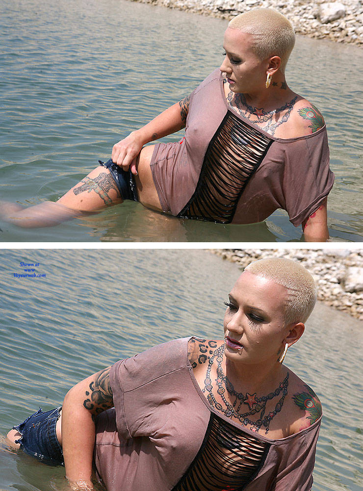 Big Tits Blonde Outdoors See Through Body Piercings Tattoos Beach Voyeur