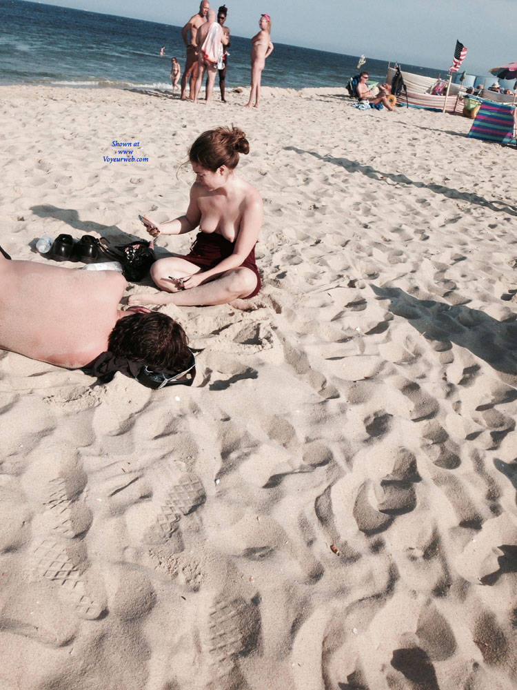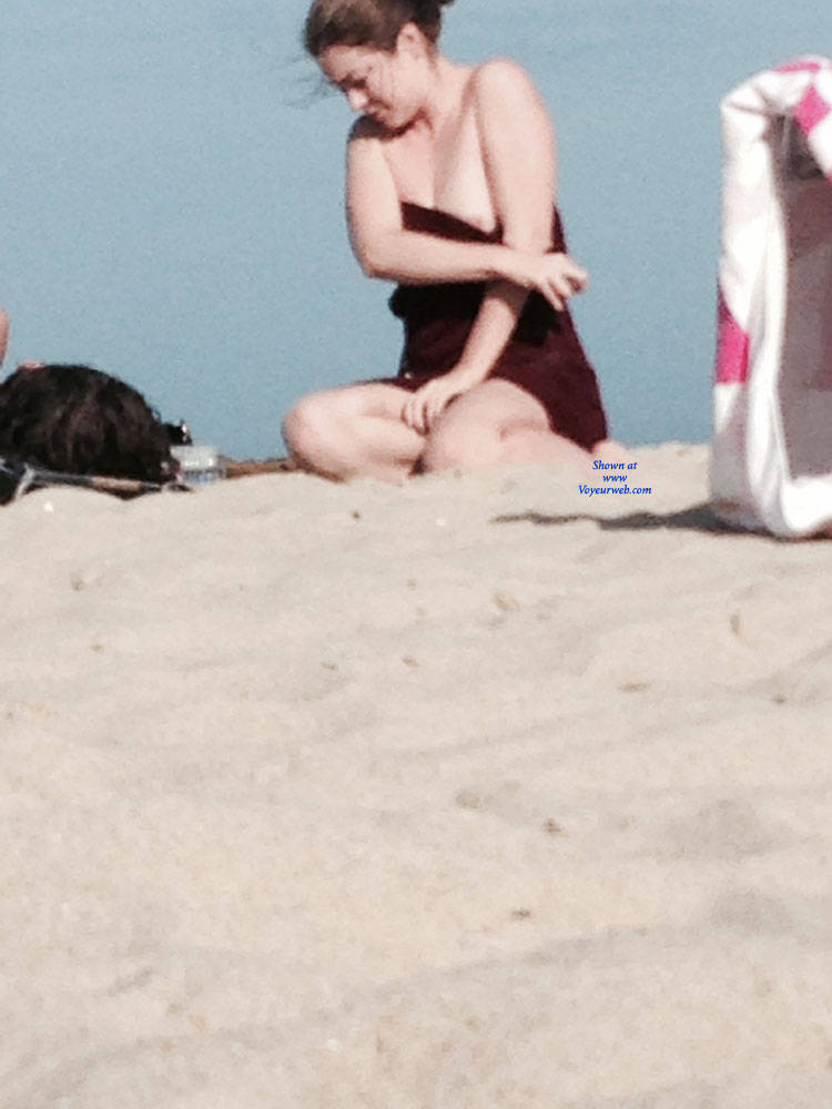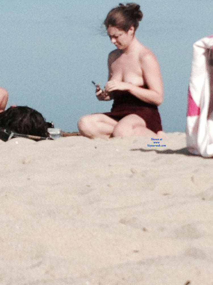 At the nude beach, I saw her taking her top off. She had nice perky tits.