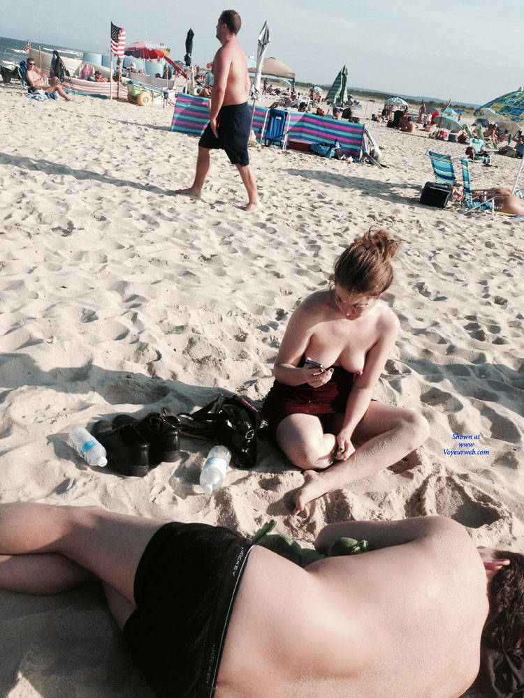 Topless Girls Brunette Outdoors Beach Voyeur