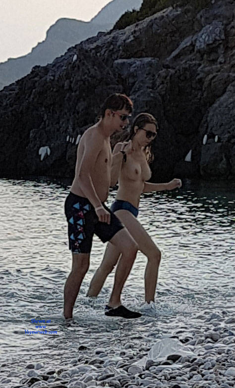 Topless Girls Big Tits Brunette Outdoors Beach Voyeur