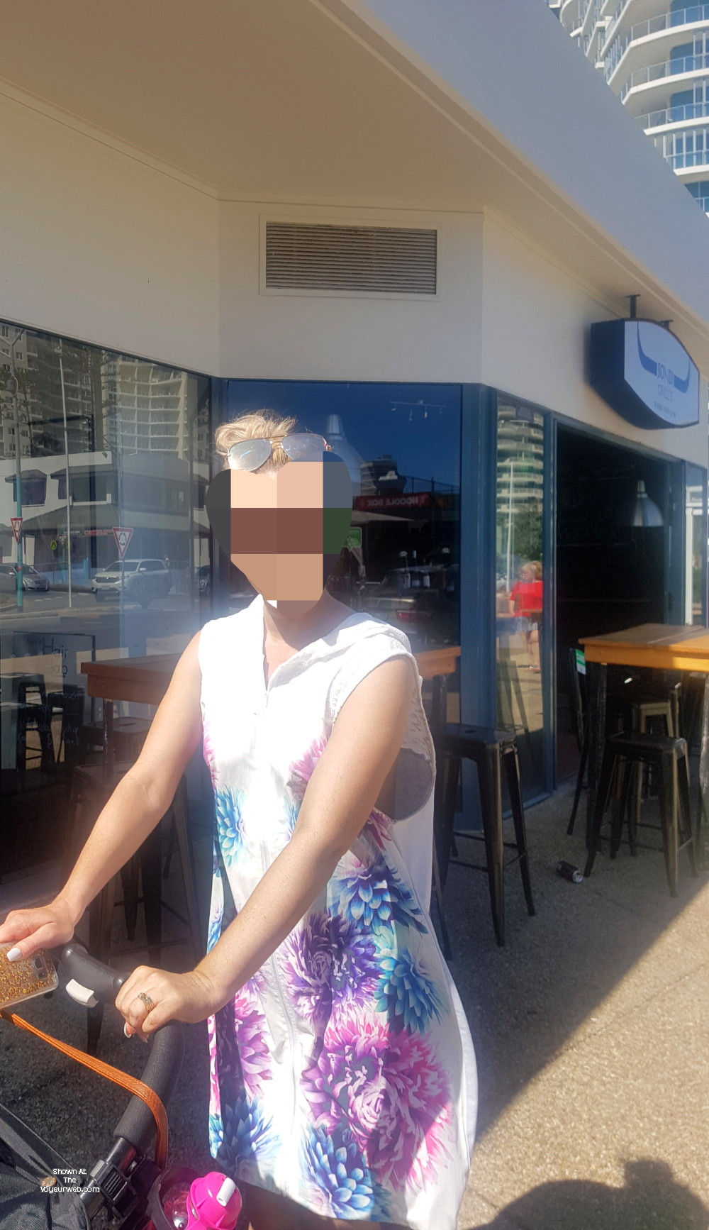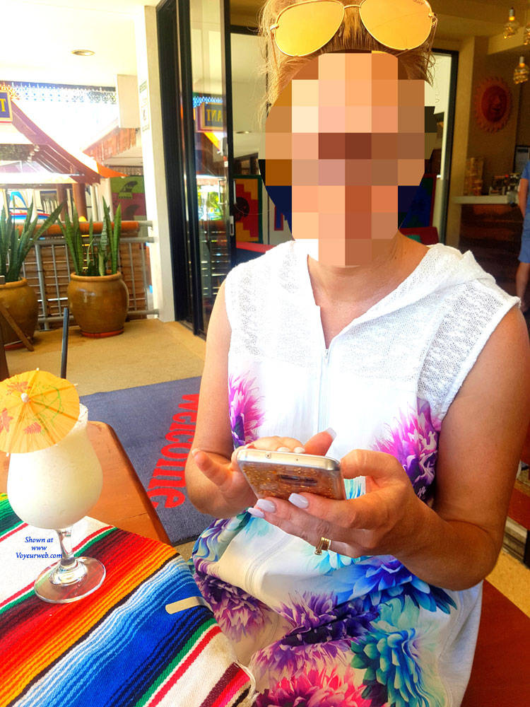 A beautiful sunny day in Queensland Australia. The wifey and I go to a Mexican joint for lunch. She had no bra on and her boobs were frequently visable to patrons in the restaraunt. Smiles all round.
